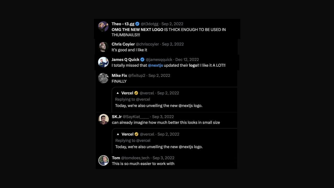 It was time to encapsulate the reliability and efficiency that Next.js signifies through a new logo, driven by the strength of scalability and an emphasis on simplicity - one that excels not just in form but also in function.